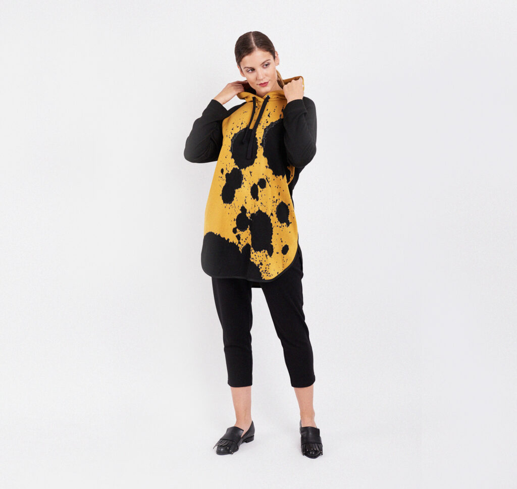 Jednak gdy w zeszłym roku zapanował lockdown, miasta ucichły. Ulice opustoszały, wszystkie nasze ulubione restauracje i kawiarnie zostały zamknięte. Skończyły się też wieczorne spotkania z przyjaciółmi, spontaniczne wypady do kina. My, spędzając czas w domowym zaciszu, próbowałyśmy odnaleźć tę miejską energię. Tęskniąc za miejskim zgiełkiem, planowałyśmy stworzenie kolekcji inspirowanej stylem urban – pełnej wyrazistych wzorów z energicznymi akcentami kolorystycznymi z elementami sportowej elegancji.