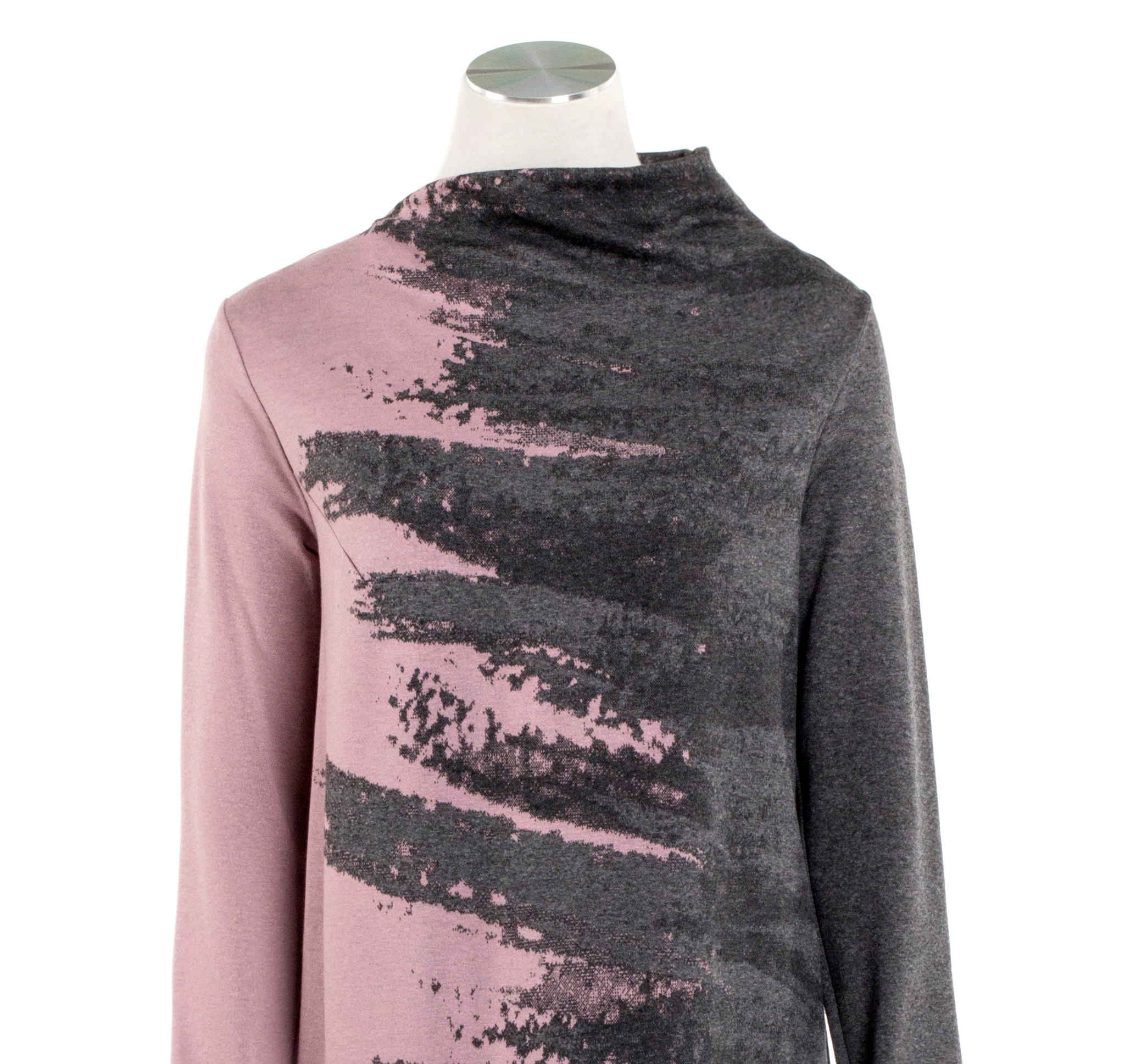 z ekskluzywnej wiskozowej dzianiny żakardowej z wzorem malarskim pociągnięć pędzla zaprojektowanym specjalnie na marki AB Nahlik.
